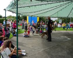 - godzina 15.00 znakowanie rowerów przez policję/należy okazać dowód nabycia/pokaz tresury psa policyjnego,